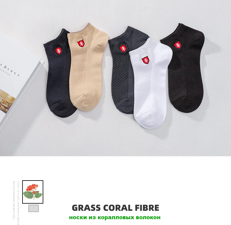 Latest design Grass coral fiber ankle socks men antibacterial deodorant High quality embroidery boat sock men