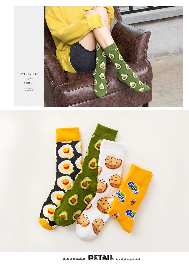 Cotton Socks Women’s Medium Hosiery INS Wool cotton long tube gourmet snack avocado stockings long socks high tube web celebrity socks